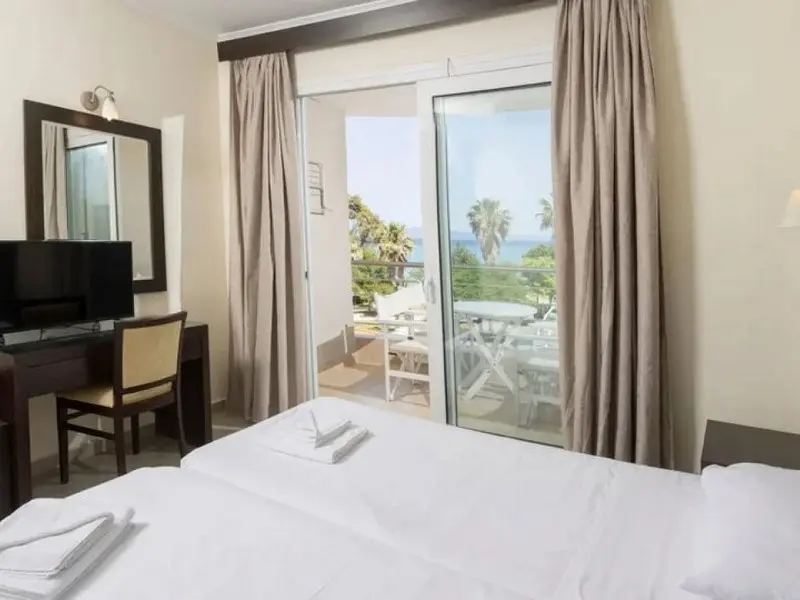 - Standard Room Side Sea View for up to 2 persons-18 kvadratnih metara, sa bračnim ili dva odvojena kreveta i dodatnim pomoćnim ležajem, nameštenim balkonom sa bočnim pogledom na more i sopstvenim kupatilom sa tušem.