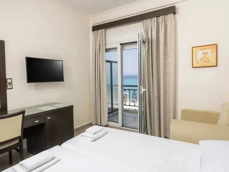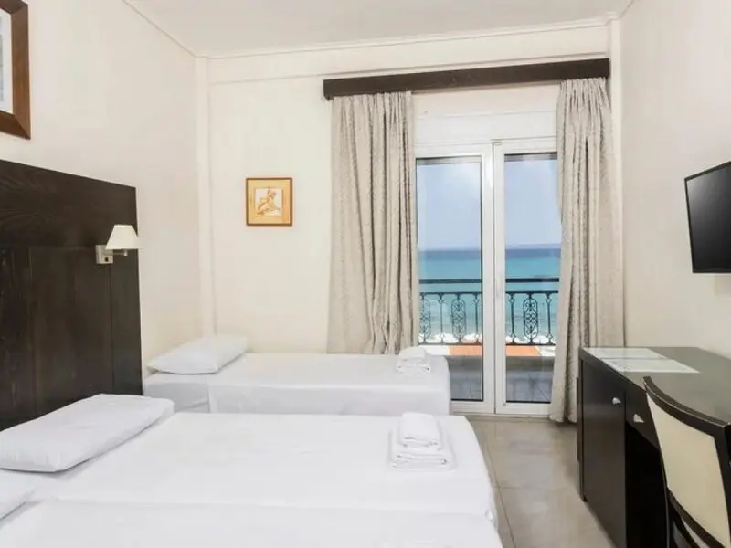 - Standard Room Front Sea View for up to 3 persons-20 kvadratnih metara, sa bračnim ili dva odvojena kreveta i dodatnim krevetom za jednu osobu, nameštenim balkonom sa pogledom na more i sopstvenim kupatilom sa tušem.