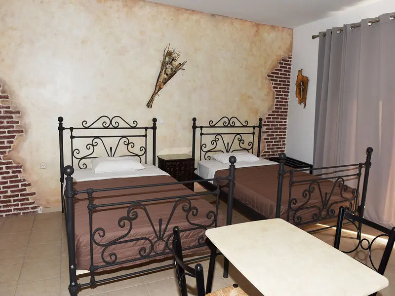 1/2 studio – u jednoj prostoriji se nalazi čajna kuhinja i dva obična ležaja (LCD-TV, klima uređaj (čije korišćenje nije uključeno u cenu i iznosi 5€ dnevno po smeštajnoj jedinici), Wi-FI, kuhinja, terasa).
