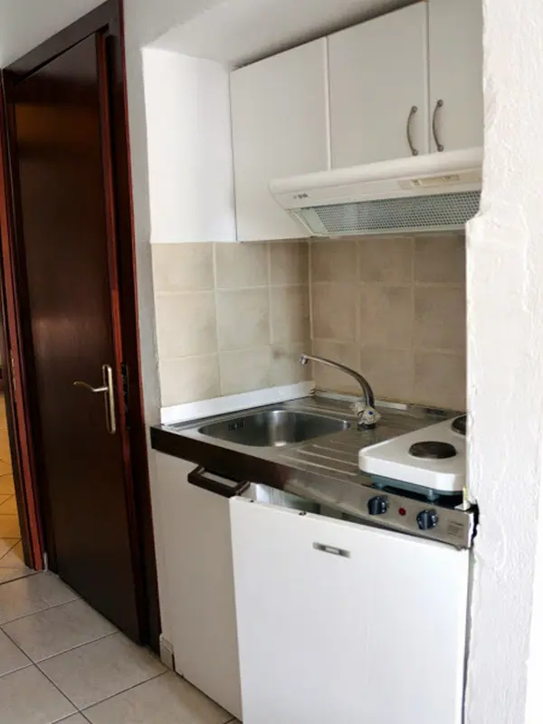1/2 studio – kompletno opremljena kuhinja, kupatilo, terasa, odvojena soba sa francuskim ležajem ili sa dva singl ležaja
