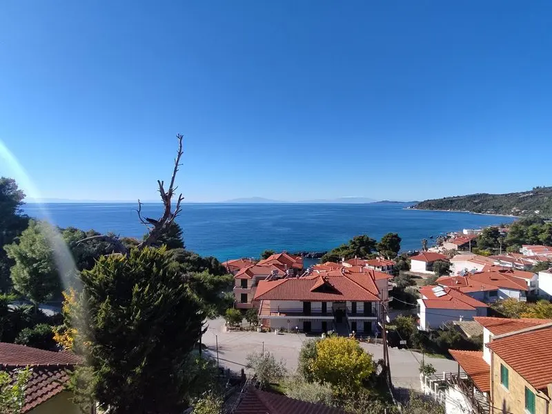 Vila Celestial Spa Sea View se nalazi na samo 50m od banjskog kompleksa Thermal Spa Agia Paraskevi dok je plaža ispod banjskog kompleksa udaljena svega par minuta hoda. Najbliža plaža (u neposrednoj blizini restorana Villa Stasa) je na 150m udaljenosti od objekta dok su centar mesta i glavna uređena mesna plaža udaljeni oko 400m. Vila nudi izbor između trokrevetnih, četvorokrevetnih kao i šestokrevetnih apartmana sa tri odvojene spavaće sobe. Spratnost varira od prizemlja do drugog sprata u kaskadnoj konfiguraciji. Sve jedinice (izuzev anex apartmana) imaju panoramski pogled na more i opremljene su kuhinjom (rešo sa jednom ili dve grejne ploče) sa velikim frižiderom, kupatilom sa tuš kabinom, klima uređajem, LCD TV-om. Objekat se nalazi naspram Aphrodite hotela i krasi ga zajedničko dvorište okupano mediteranskim rastinjem. Zbog svoje izuzetne pozicije, Celestial Spa Sea View je odličan izbor za sve osobe koje žele da uživaju u nesputanom pogledu na Egejsko more i arhipelag Sporada iz svojih aparatmana ujedno imajući lak pristup poznatom banjskom kompleksu i blagodetima koje on nudi.