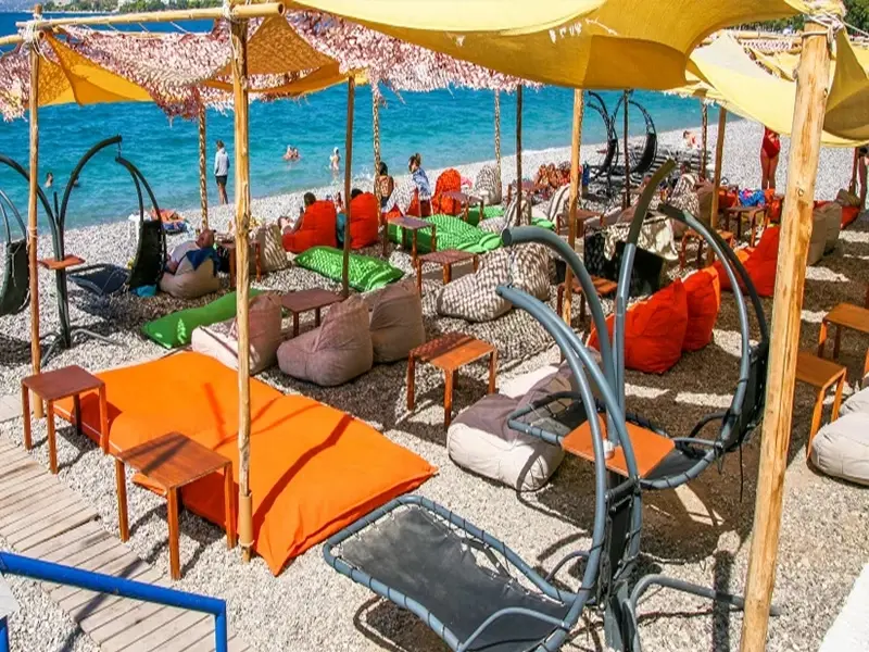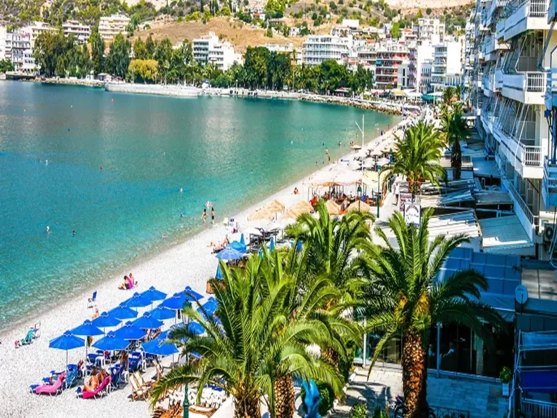 Na svim plažnim barovima u Lutrakiju uz konzumaciju pića je moguće koristiti ležaljke i suncobran.
