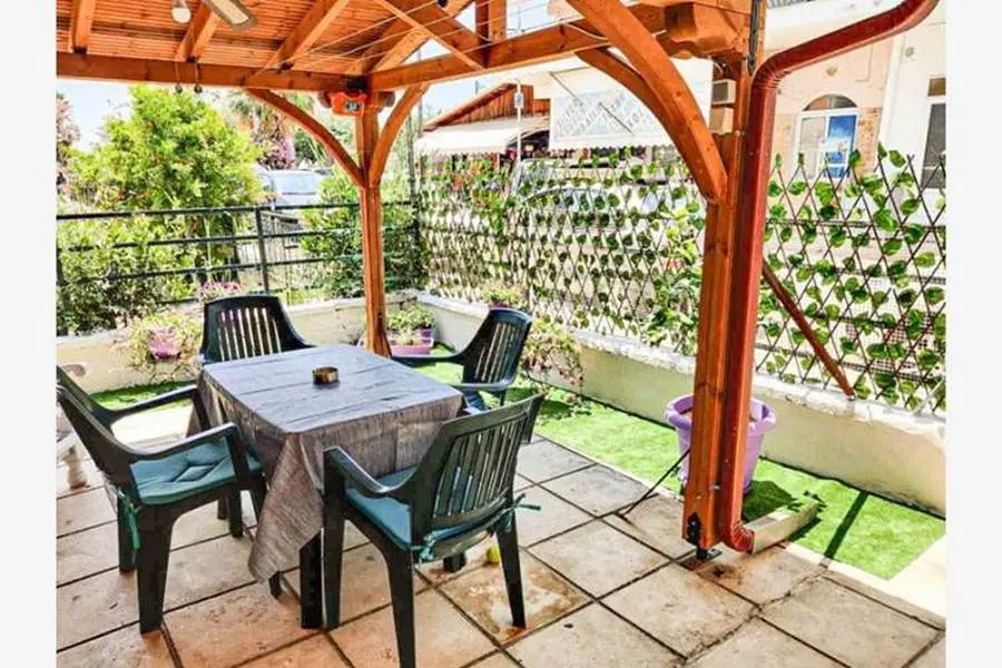 Vila Garden se nalazi u centralnom delu Nea Flogite na 40-ak metara udaljenosti od plaže. U ponudi su dvokrevetni i trokrevetni poluapartmani koji su smešteni u prizemlju i na prvom spratu. U poluapartmanima kuhinjski deo je izdvojen u posebnoj prostoriji, ali nije fizički odvojen vratima, dok se svi kreveti nalaze u jednoj sobi. Sve smeštajne jedinice imaju osnovno opremljenu kuhinju, kupatilo, terasu i TV. Korišćenje klima uređaja je uključeno u cenu najma apartmana. Promena posteljine je na polovini boravka, a u objektu postoji i mogućnost korišćenja WiFi interneta.