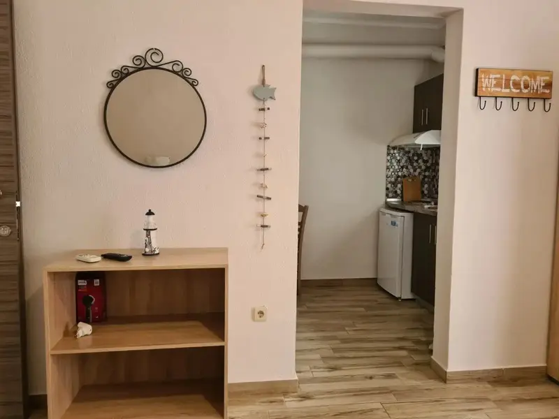 - Studio je smeštajna jedinica koja se sastoji od kupatila (tuš/WC) i jedne prostorije u kojoj se nalazi naznačeni broj ležaja i kuhinjski deo koji je opremljen rešoom, frižiderom i osnovnim posuđem.