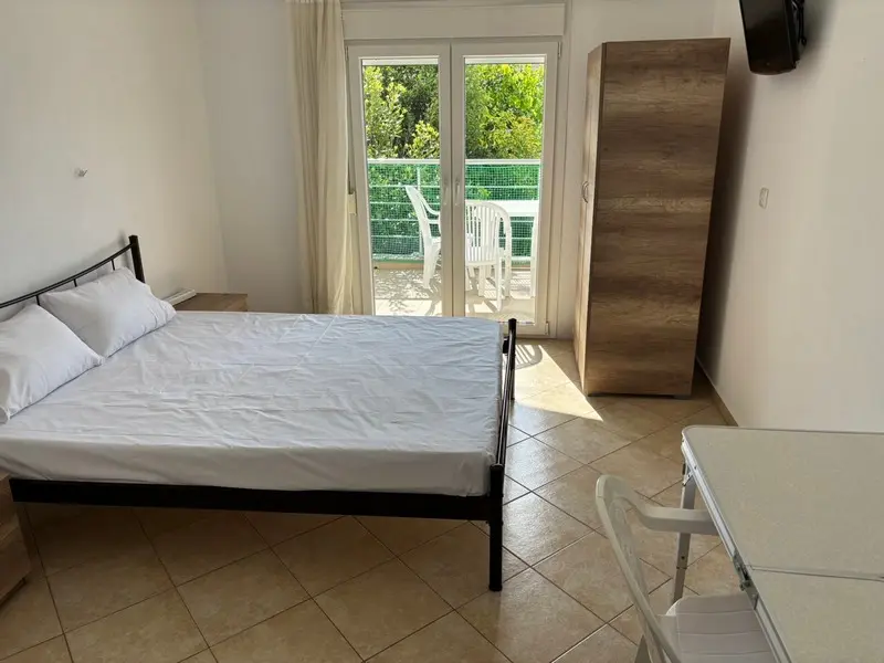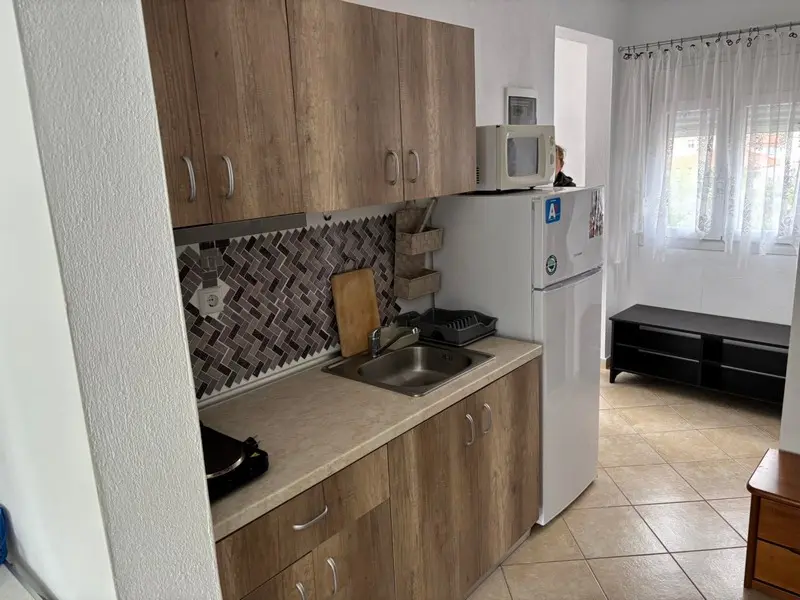 1/3 studio – kompletno opremljena kuhinja, kupatilo, terasa, francuski ležaj i jedan singl ležaj;