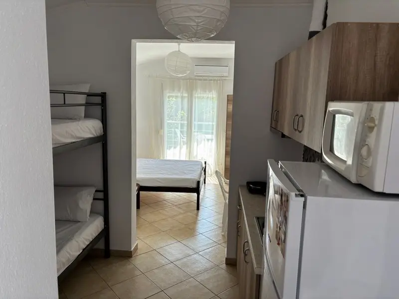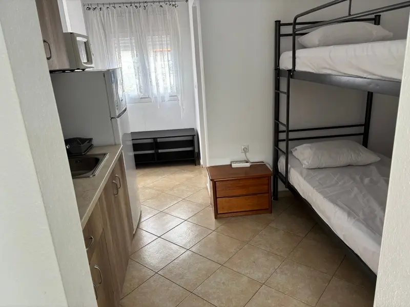 1/4 studio – kompletno opremljena kuhinja, kupatilo, terasa, francuski ležaj i krevet na sprat;