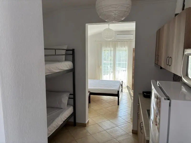 1/2 studio – kompletno opremljena kuhinja, kupatilo, terasa, postoje sobe sa francuskim ležajem kao i sobe sa dva kreveta na sprat;