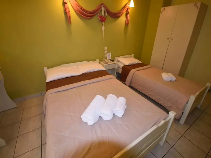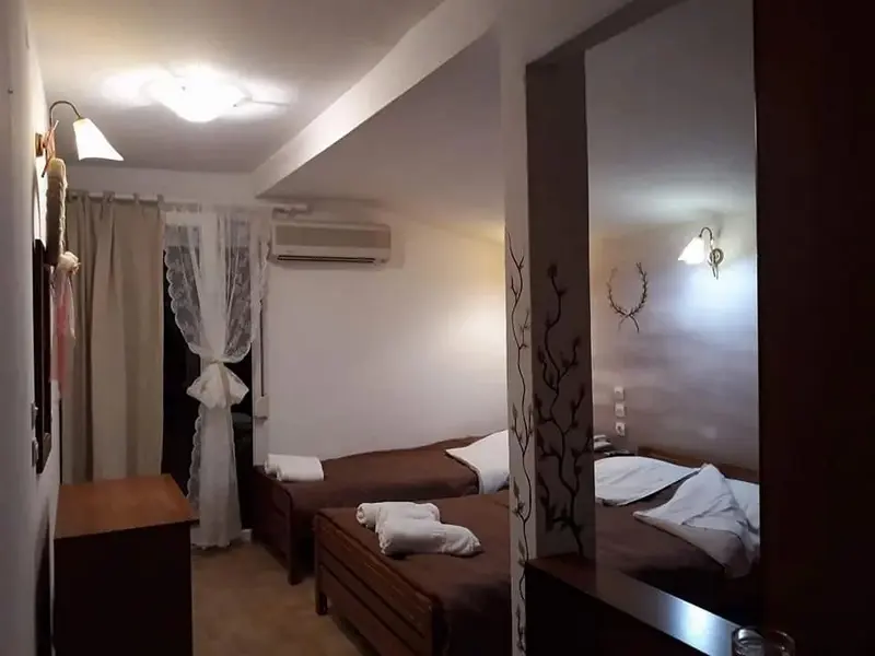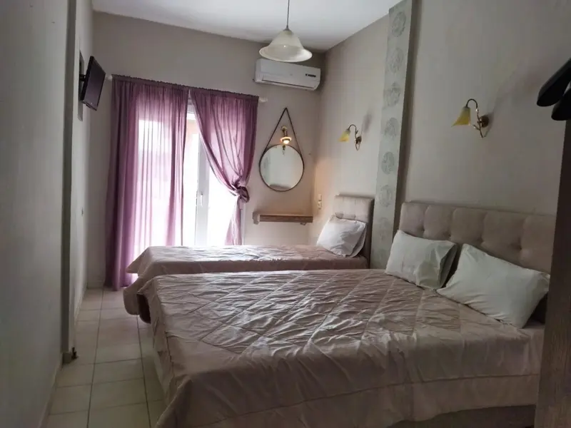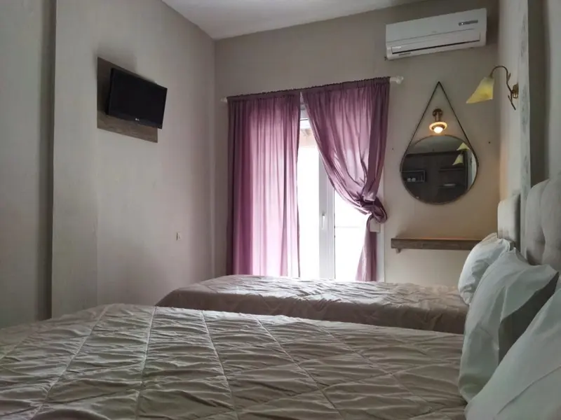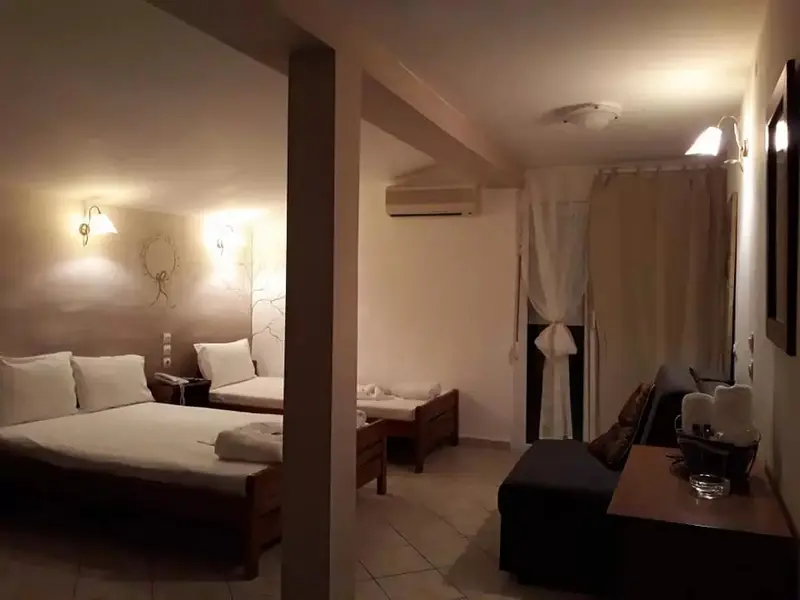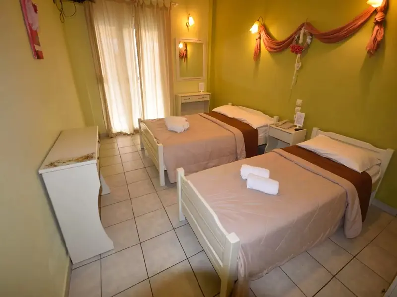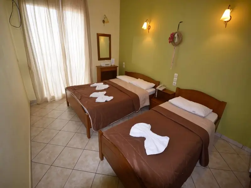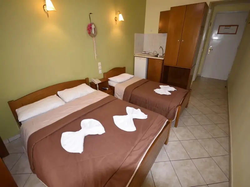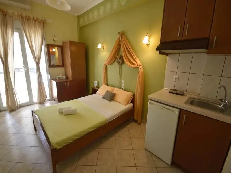 Sobe poseduju mini frižider, toster i električno kuvalo za vodu i kafu. Sve sobe opremljene su TV-om (samo grčki kanali), sefom, Wi-Fi internetom i klima uređajem. Doplata za korišćenje klime iznosi 5e po danu i plaća se na licu mesta. Sva studija imaju pogled na vrt. Poseduju čajnu kuhinju opremljenu frižiderom, tosterom i električnim kuvalom za vodu i kafu, osnovnim priborom. Kuhinja NIJE namenjena za kuvanje hrane i ne sadrži ringle. Sva studija opremljena su TV-om (samo grčki kanali), sefom, Wi-Fi internetom i klima uređajem. Doplata za korišćenje klime iznosi 5€ po danu i plaća se na licu mesta. U okviru hotela postoji snack bar u kome se služi doručak. Doplata za doručak iznosi 10e po osobi po danu i vrši se na licu mesta. Za decu do 7 god – besplatno. Promena posteljine i peškira vrši se jednom tokom boravka. Osoblje hotela svakodnevno održava čistoću smeštajnih jedinica.