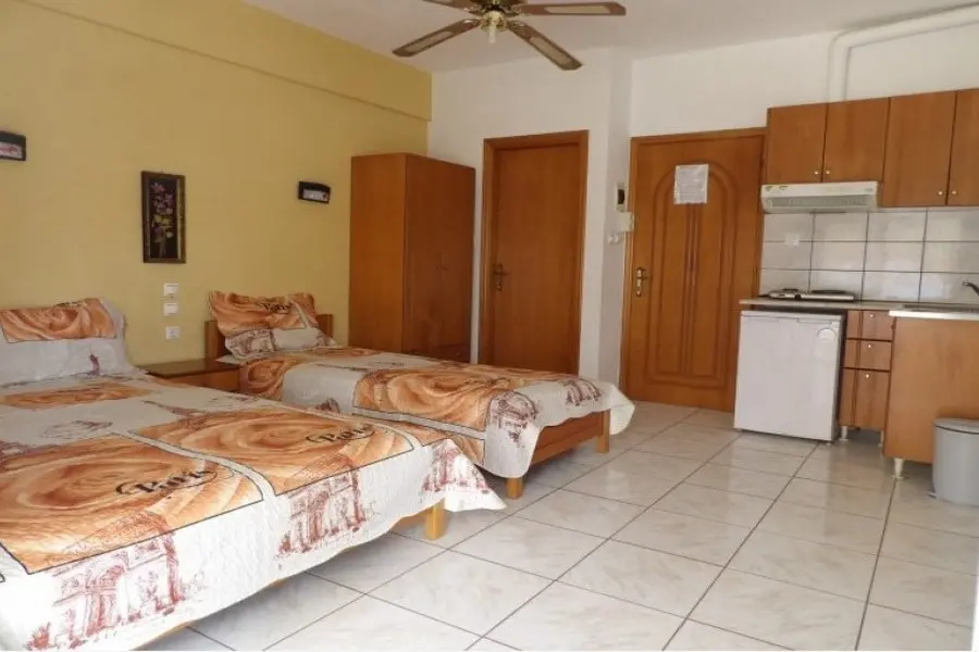 Vila poseduje studije za dve do četiri osobe i četvorokrevetne i petokrevetne dupleks apartmani smeštene na prvom i drugom spratu. Sve smeštajne jedinice poseduju opremljen kuhinjski deo, kupatilo/wc, terasu, TV, WiFi internet i klima uredjaj (uz doplatu na licu mesta od 7€ po danu).