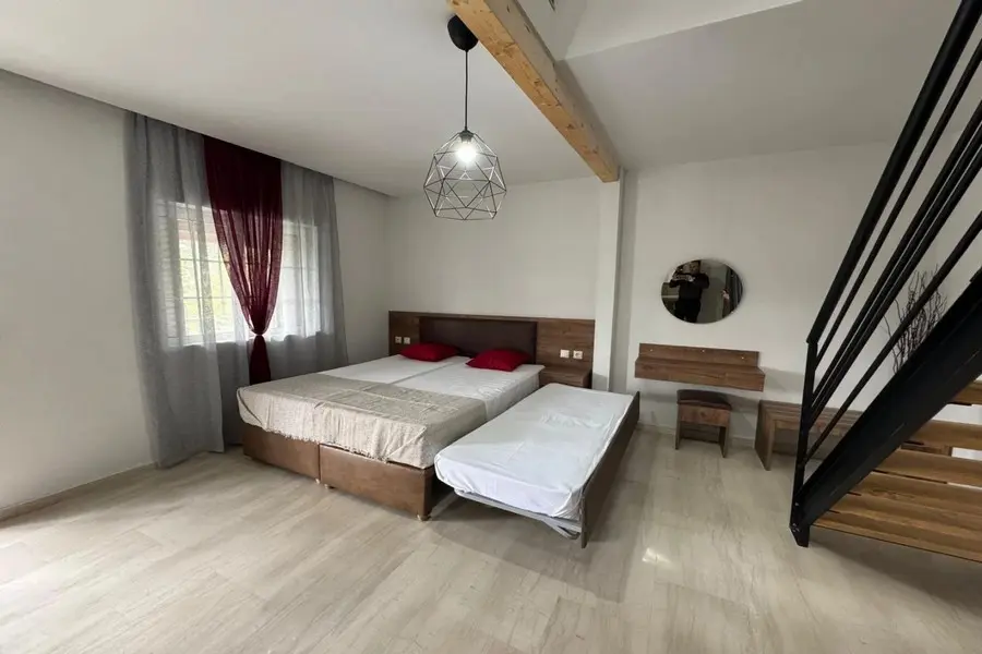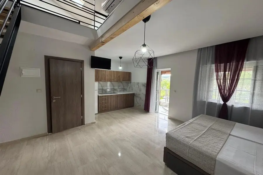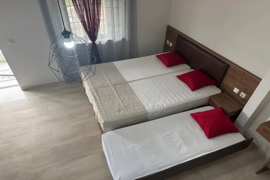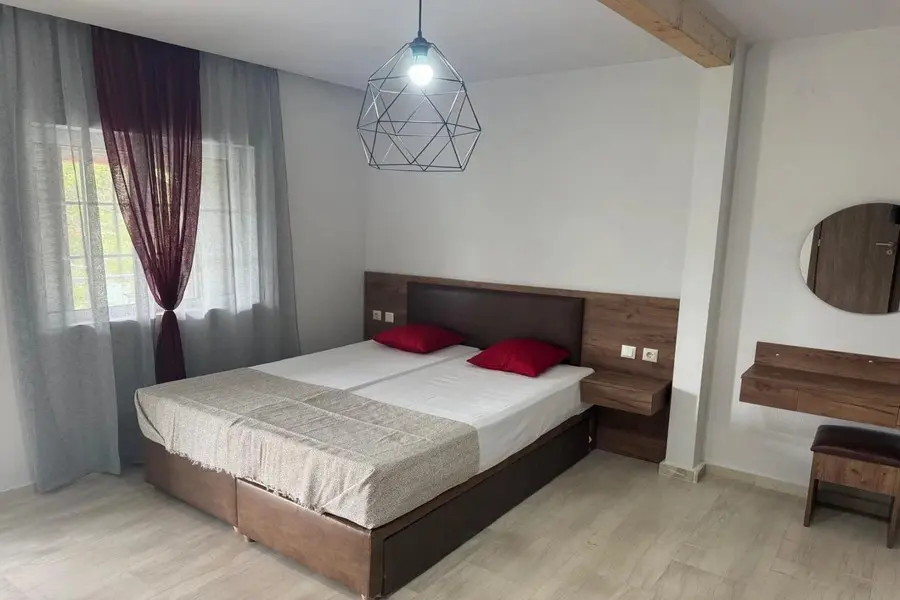 Vila Giannis Lux se nalazi na 300m od plaže i 100m od kružnog toka, na početku mesta. Vila je kompletno renovirana za sezonu '25. Vila nema sopstveni parking. U ponudi su veoma prostrani studiji u prizemlju, na prvom i drugom spratu, kao i mezonete na drugom spratu. Napomena: Vila poseduje jednu eko sobu sa prolaznom terasom sa svetlarnikom, bez prozora i za tu sobu je odobren popust od 7%. Studiji poseduju frižider sa odvojenom komorom, velike terase, plazma TV, kao i klima uređaj čije je korišćenje uračunato u cenu.