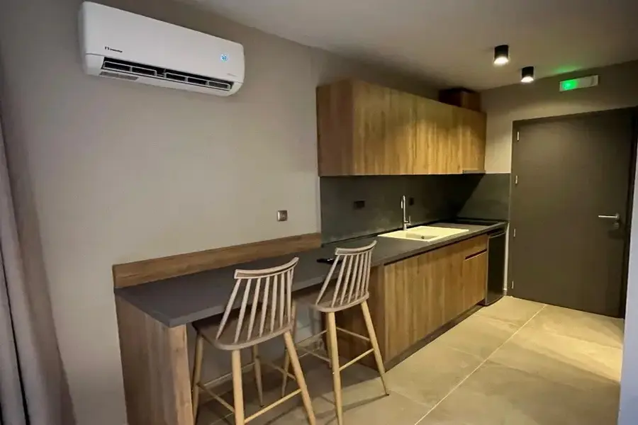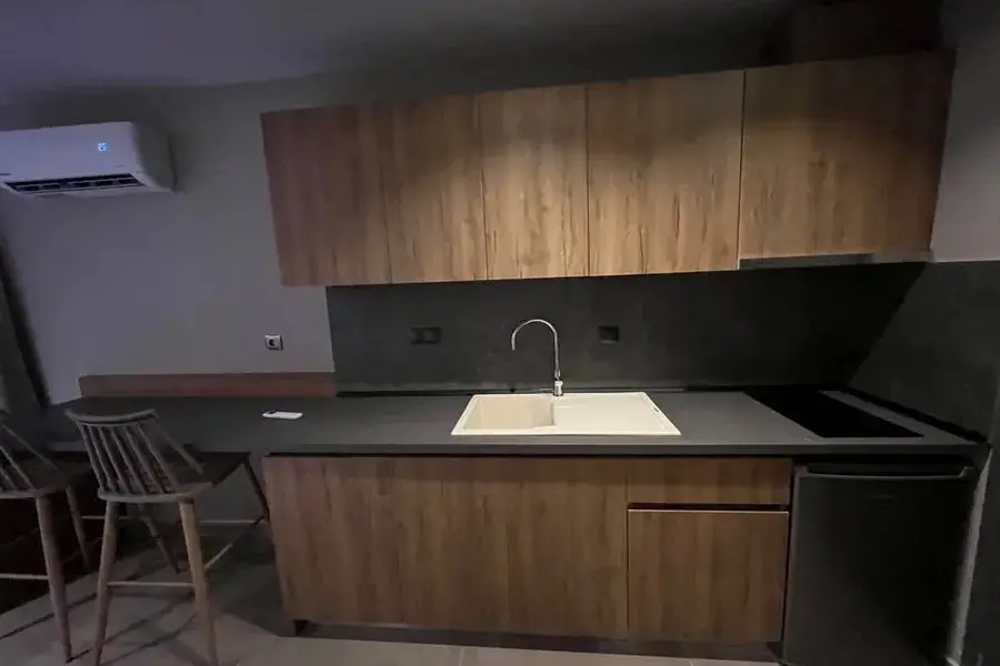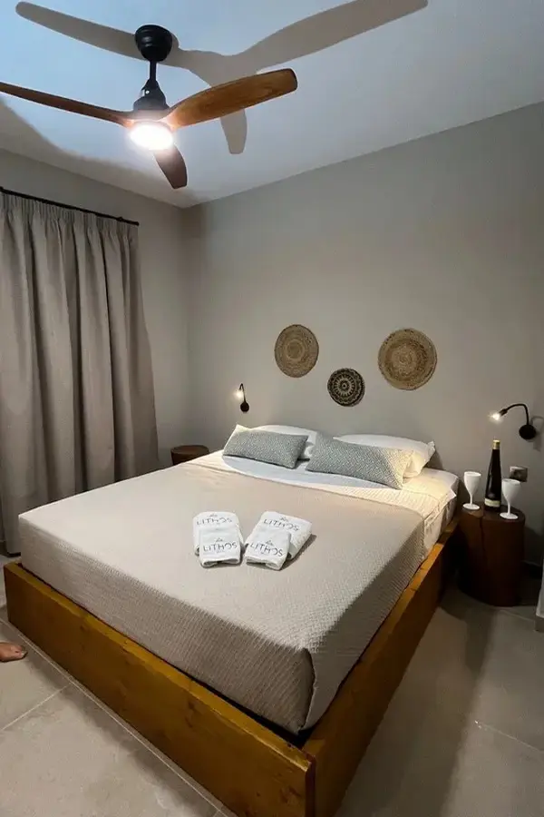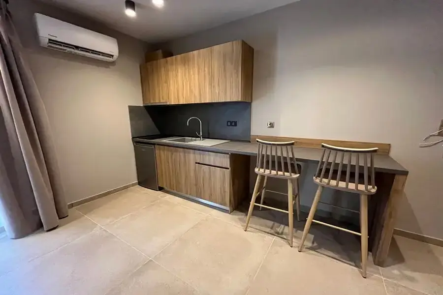 Vila Lithos Village je potpuno nov objekat i dočekuje svoje prve goste u '25 godini. Trokrevetni studiji i četvorokrevetni apartmani se nalaze u prizemlju i niskom prizemlju. Lithos village je sastavno deo lithos villas Nikiti i nalazi se na samo 2km od centra Nikitija, na 1.5km od Lidla i Masoutisa i na manje od kilometar od plaže u nastavku mesta Nikiti i 3km od jedne od najlepših plaža Sitonije Agios Ioannis gde se nalazi i popularni hotel Ammoa. Studiji i apartmani imaju tv, klima uređaj čije je korišćenje uključeno u cenu kao signal za korišćenje besplatnog bežičnog interneta. Čišćenje kao i zamena posteljine su organizovana dva puta za boravke od 10 dana ili jednom za boravak od 7 dana. Gostima je na raspolaganju prostrano dvorište sa roštiljem, bazen za odrasle i dečiji bazen, igralište za decu i parking za automobile. Lithos village je sjajna baza za obilazak Sitonije iz pravca Nikitija u luksuznim apartmanima visoke kategorije. Studiji i apartmani u niskom prizemlju su u glavnoj zgradi, a oni u prizemlju su u manjem depadansu u neposrednoj blizini bazena.