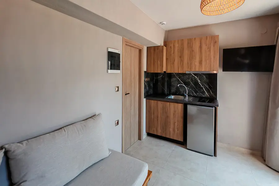 Kuhinje su, većinom, opremljene samo elementarnim inventarom za pripremanje, konzumiranje i čuvanje hrane sa time da je frižider. Kupatila su uvek sa tušem (sa ili bez tuš kade), sa odvodnim cevima malih profila i ponekad skromnih dimenzija. Kao i u većini delova Grčke, voda ni na Halkidikiju nije za piće. Na kvalitet, boju i izgled vode iz vodovoda vlasnici kuća ne mogu imati uticaja. Lokalni vodovod garantuje tehničku ispravnost vode za potrebe održavanja lične higijene. Dimenzije kreveta u Grčkoj se razlikuju od naših standarda. Grčki standard za klasičan krevet je 75-80 x 180-190 cm, francuski krevet je 120-155 x 180-190 cm, pomoćni, uglavnom metalni ležaj ili fotelja na rasklapanje je 70-90 x 180-190 cm. U nemogućnosti da u opisima objekata detaljno navede sve karakteristike svih smeštajnih jedinica, Organizator predlaže da korisnici usluga zatraže precizne informacije o istima, pre prijave za izabrani studio ili apartman. Postoje određene kuće gde zbog toga što su izgrađene na kosom terenu ili iz drugog razloga spratnost ulaska u apartman i spratnost terase istog apartmana nisu isti. U ovakvim kućama prikazana spratnost će se odnositi na spratnost terase određene smeštajne jedinice. Svi studiji i apartmani imaju terasu, wc i tuš sa toplom i hladnom vodom, sto i stolice, orman, kuhinju sa frižiderom koja je opremljena prema broju osoba (tanjiri, čaše, šolje, noževi, viljuške, kašike, šerpa, tiganj, džezva za kafu). Promena posteljine je na pola smene. Domaćini kuća na dan zamene posteljine dostavljaju čistu posteljinu koju gosti sami menjuju kao što i sami održavaju higijenu apartmana tokom svog boravka. Pored standardne opreme apartmani mogu imati i odredjenu opremu koja ih izdvaja u odnosu na ostale apartmane iz ponude. U cenovnicima su pored naziva određenih kuća nalaze brojevi. Kuća ima signal za besplatno korišćenje bežičnog interneta. Uslugu besplatnog bežičnog interneta pružaju domaćini kuća preko lokalnih provajdera internet usluga. Protok prosečne brzine, koji se bežično šalje putem rutera u centralnom delu objekta, nije predviđen za strogo profesionalnu upotrebu. Za korišćenje gost dobija šifru od predstavnika ili domaćina kuće. Uz ovaj Program važe Opšti Uslovi Putovanja Organizatora Astra Travel, otp 66/21. Ovlašćeni subagent Time Travel. Agencija nije u mogućnosti da garantuje, niti snosi odgovornost, za jačinu signala, pokrivenost apsolutno svih studija kao ni brzinu protoka. Ukoliko određenu kuću iz poslovnih ili drugih razloga birate upravo zbog ove usluge, savetujemo da se pre uplate podrobnije informišete u Vašoj turističkoj agencji kako bi Vam preporučili čak i određenu sobu gde je proverena stabilnost i jačina signala. Brojevi su konkretni brojevi određenog studija ili apartmana koji se u odredjenom smislu razlikuje u odnosu na studije/ apartmane istog tipa u okviru kuće. To se može odnositi na veličinu ili lokaciju terase, kao i na prostranost samog apartmana, zbog koje i postoji razlika u ceni u odnosu na ostale iz odredjene kuće. Svi studiji i apartmani imaju terasu, wc i tuš sa toplom i hladnom vodom, sto i stolice, orman, kuhinju sa frižiderom koja je opremljena prema broju osoba (tanjiri, čaše, šolje, escajg, šerpa, tiganj, djezva za kafu). Promena posteljine je na pola smene, za smene duže od 7 noći. Domaćini kuća na dan zamene posteljine dostavljaju čistu posteljinu koju gosti sami menjaju kao što i sami održavaju higijenu apartmana tokom svog boravka. Pored standardne opreme apartmani mogu imati odredjenu opremu koja ih izdvaja u odnosu na ostale apartmane iz ponude. U cenovnicima se pored naziva određenih kuća nalaze brojevi. Brojevi su konkretni brojevi određenog studija ili apartmana koji se u određenom smislu razlikuje u odnosu na studije/apartmane istog tipa u okviru kuće. To se može odnositi na veličinu ili lokaciju terase, kao i na prostranost samog apartmana, zbog koje i postoji razlika u ceni u odnosu na ostale iz određene kuće. Molimo goste da ponesu svoje peškire, s obzirom da peškiri nisu deo standardine opreme studija/ apartmana.
