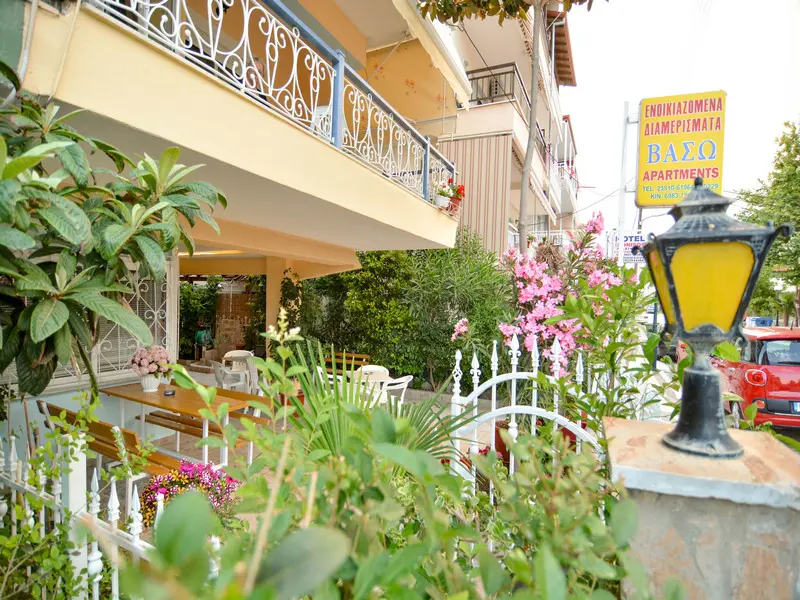Vila Vaso se nalazi na odličnoj lokaciji (na minut hoda od plaže i preko puta parka) i poseduje čiste i lepe smeštajne jedinice sa dobrim terasama. Do plaže koja je u ovom delu Paralije najšira, vila je udaljena oko 60 metara, a od centra letovališta oko šest minuta hoda. Supermarket i pekara su u neposrednoj blizini, a u blizini je i market Lidl. Vila je opremljena WIFI internetom na svim spratovima, prostorom za odlaganje stvari prilikom smene. Sve terase imaju tendu. Raspolaže dvokrevetnim, trokrevetnim i četvorokrevetnim studijima, kao i četvorokrevetnim, petokrevetnim i šestokrevetnim dupleks apartmanima. Svaka smeštajna jedinica ima kompletno opremljenu čajnu kuhinju, kupatilo (tuš/WC), TV i balkon, kao i klima uređaj čije se korišćenje doplaćuje na licu mesta. Ova doplata nije obavezna. Vila ima i besplatan WI-FI. Vila nema peškire. Kapaciteti agencije, nalaze se u prizemlju, prvom, drugom i trecem spratu. Dupleks četvorokrevetni, petokrevetni i šestokrevetni apartmani koji se nalaze na prvom, drugom spratu i trećem spratu, imaju prostranu terasu sa pogledom na Paraliju. Sve sobe su klimatizovane, a klima se dodatno plaća na licu mesta, za studio 5€ dnevno, za duplex apartman 10€ dnevno (dve klime). Postoji mogućnost parkiranja ispred vile.