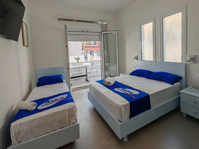 Vila Teo New nalazi se u starom delu Sartija, na oko 30m od mora, u neposrednoj blizini agencije Astra Travel, na samom šetalištu, a opet desetak metara uvučena u mirnoj ulici. U ponudi su studiji za 2-3 osobe, koji se nalaze u prizemlju i na prvom spratu. Kuća ima SAT TV i klima uređaje čije je korišćenje uključenu u cenu. Kuća je renovirana '25. godine.