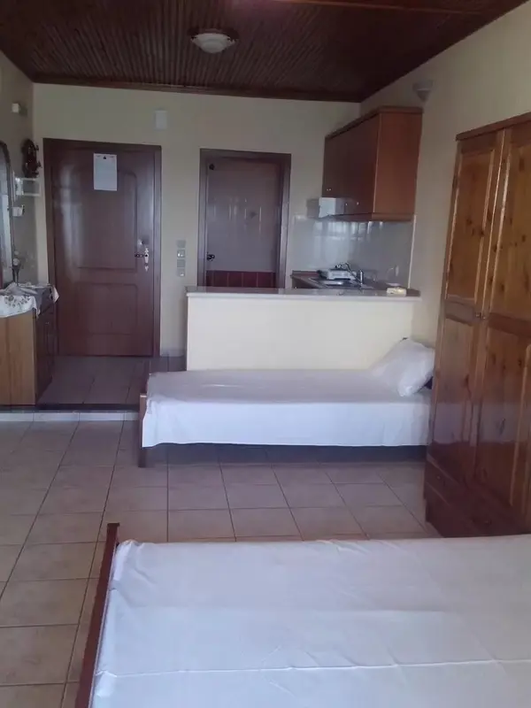 Svi studiji imaju francuski i krevet na sprat, kompletno opremljenu kuhinju, klimu (korišćenje uključeno u cenu), TV, Wi-Fi internet, kupatilo sa tuš kadom i terasu. U prizemlju kuće nalazi se taverna sa velikom baštom koja se nastavlja na plažu. Usluga: NA (najam studija/apartmana po osobi).