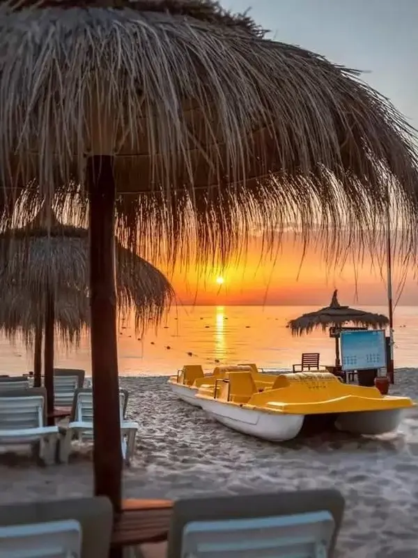 Do private, široke peščane plaže dolazi se kroz prelep vrt sa palmama. Ležaljke sa dušecima i suncobrani na bazenu i na plaži se ne naplaćuju, dok je za peškire neophodan depozit.