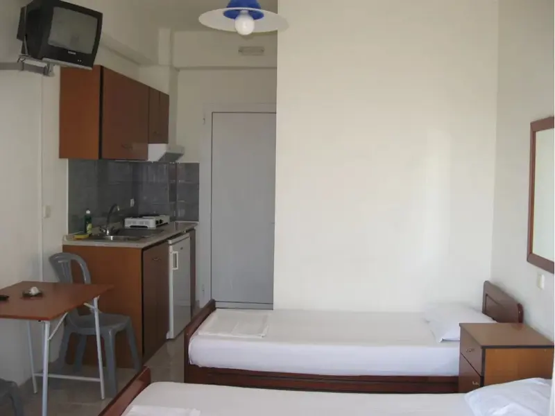 Studio - jedna prostorija u kojoj se nalazi naznačeni broj ležajeva i čajna kuhinja koja je opremljena sa frižiderom i osnovnim posuđem, kupatilo, terasa.